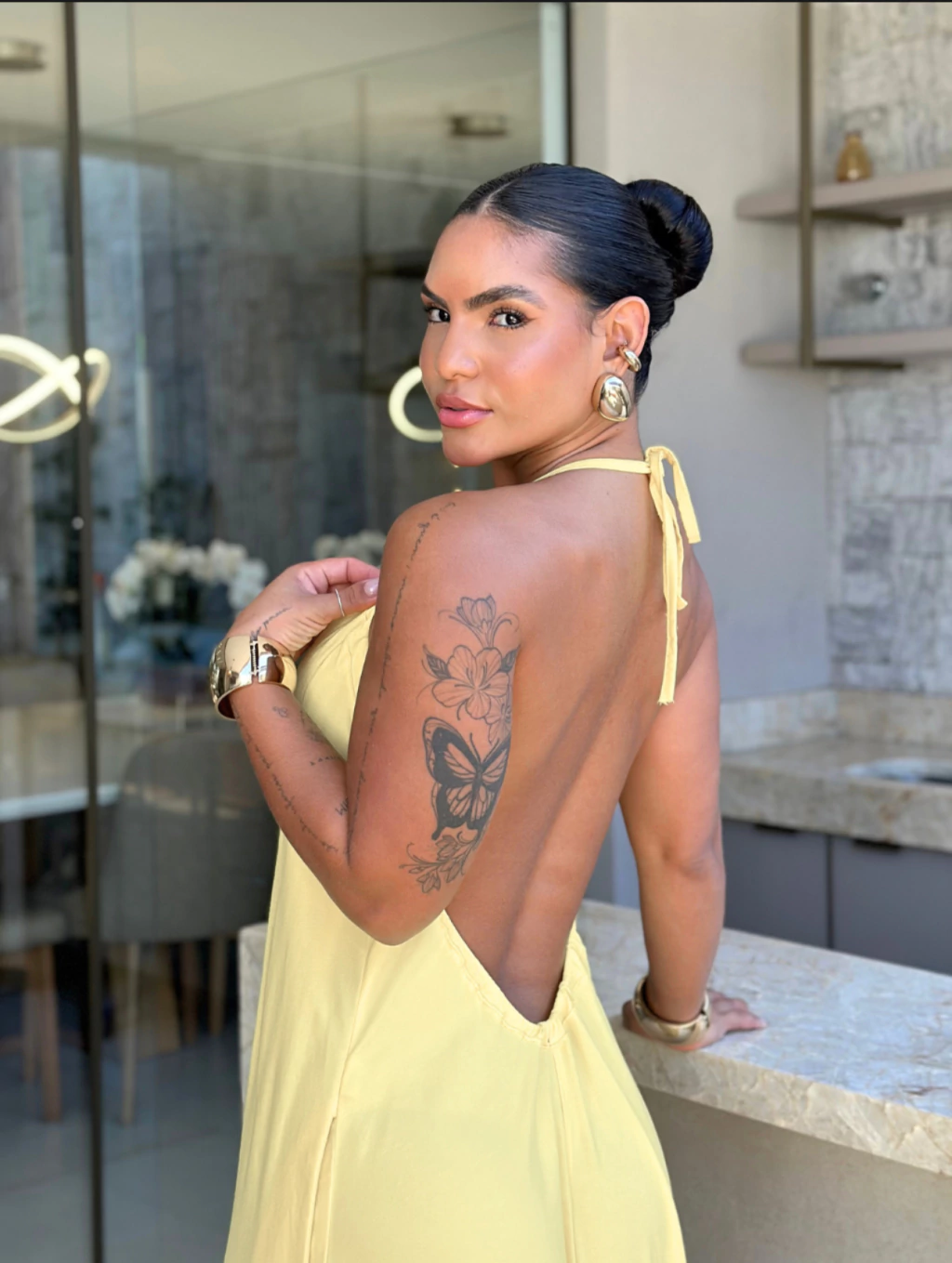 Com pantalona ampla e costas nuas, esse macacão é perfeito para várias ocasiões, desde um passeio informal até eventos mais elegantes. Combine-o com sandálias para um look descontraído ou com saltos para um toque glamouroso.